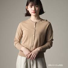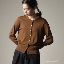 レーヨンナイロン シェルボタンクルーネックニットカーディガン 2020新作
